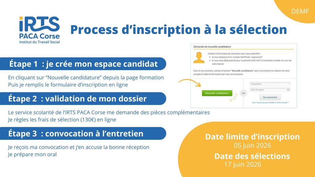 - Être titulaire d’un diplôme de niveau 5 des formations sociales, sanitaires et éducative ou ;